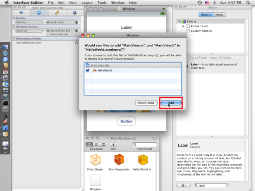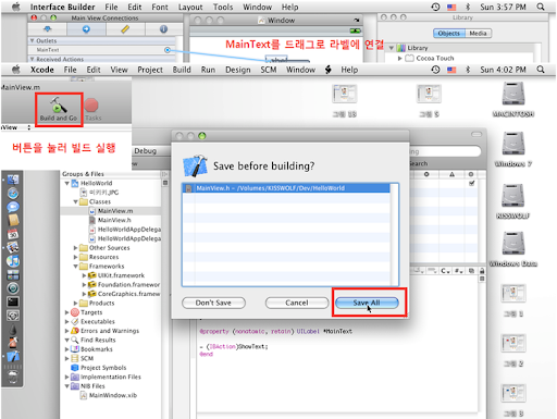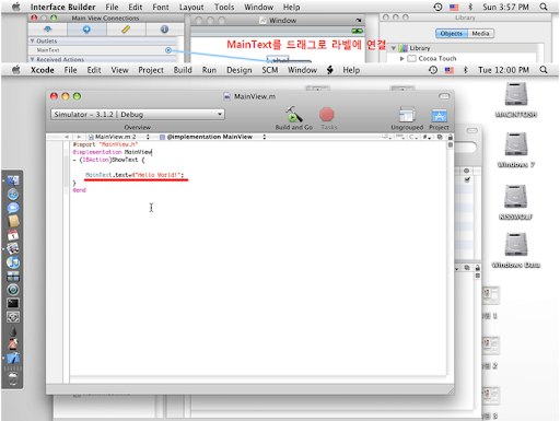 37. Mainview.m열고 Maintext.text=@”HelloWorld!”;