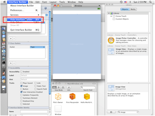 16. image View에 이미지를 추가하기 위해 잠시 인터페이스 빌더를 숨겨놓자!