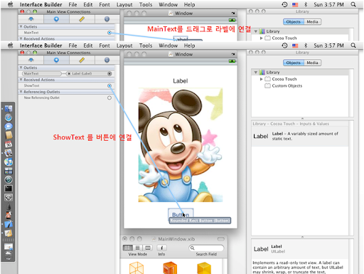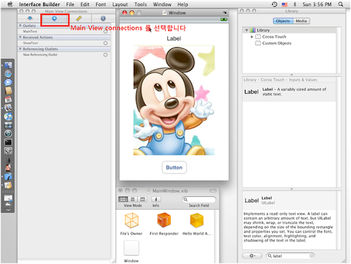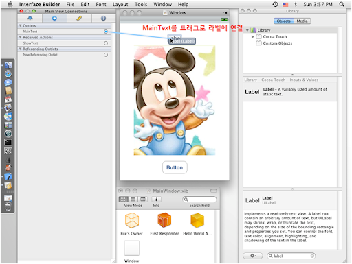 25.Outlets에 있는 MainText를 라벨에 드래그 연결