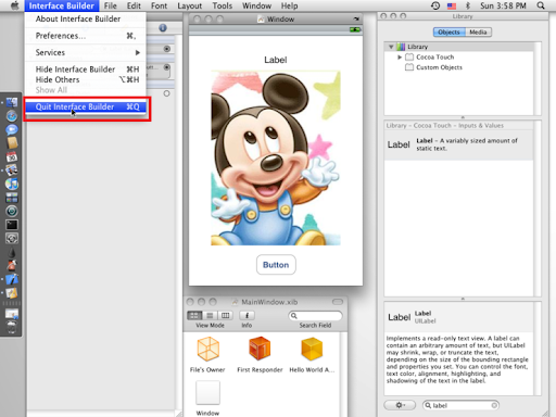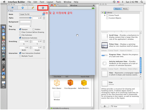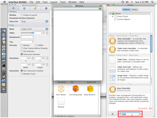 6. NIB Files 폴더안에 MainWindows.xib 파일을 더블클릭하여 인터페이스 빌더 실행