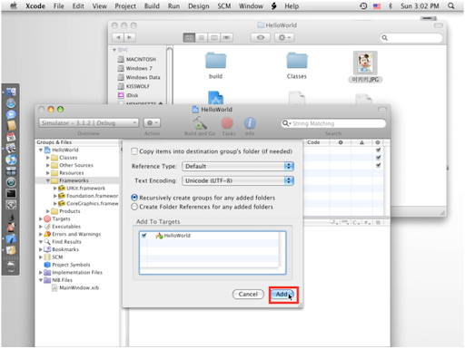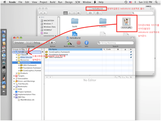 Xcode overView 안에 있는 HelloWorld 안에다 넣어주자